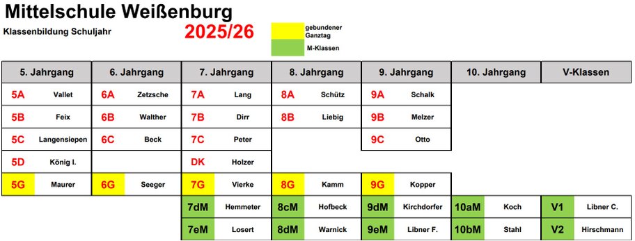 Klassenbesetzung im Schuljahr 2025/26