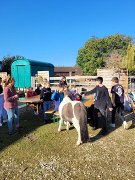 Zwei Klassen der Schule verbringen einen ganzen Tag pro Woche auf dem Therapiehof „artgerecht“ in Haardt – mit Winterpause. Unterstützt wird dort die Lehrkraft vor Ort durch Sandra Wägemann. Sie ist ausgebildete Erzieherin, systemische Familienberaterin und staatl. geprüfte Fachkraft für heilpädagogische Förderung mit dem Pferd und ein großer Gewinn für unsere pädagogische Arbeit mit den Kindern und Jugendlichen.